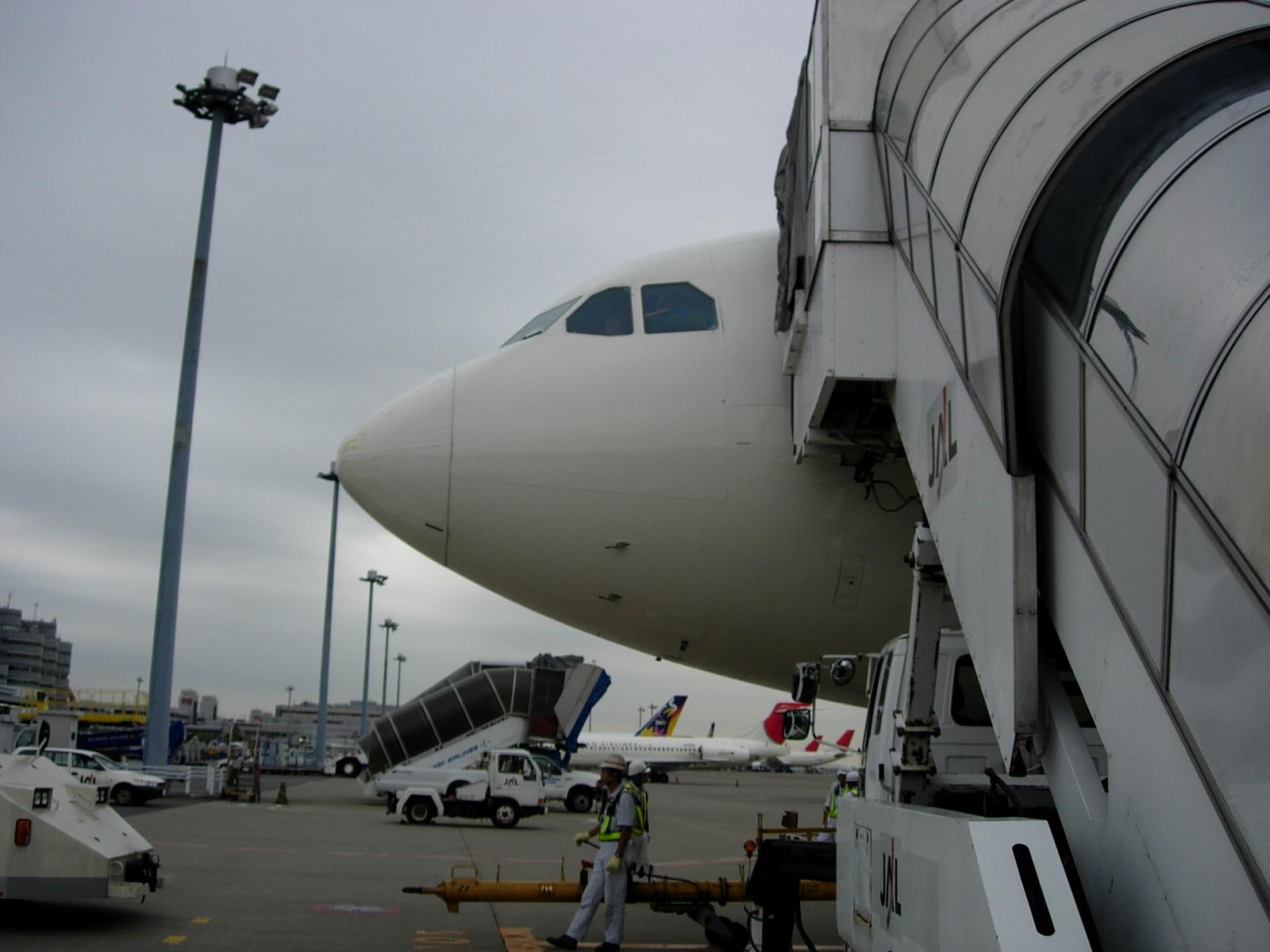 さて、1枚目から毎回恒例?飛行機の写真。うーむ。。羽田発釧路空港行きですが、まさかボーディングブリッジではなく、空港内バスとはねぇ。。おかげで、近年珍しいこのアングルを撮ることができました。