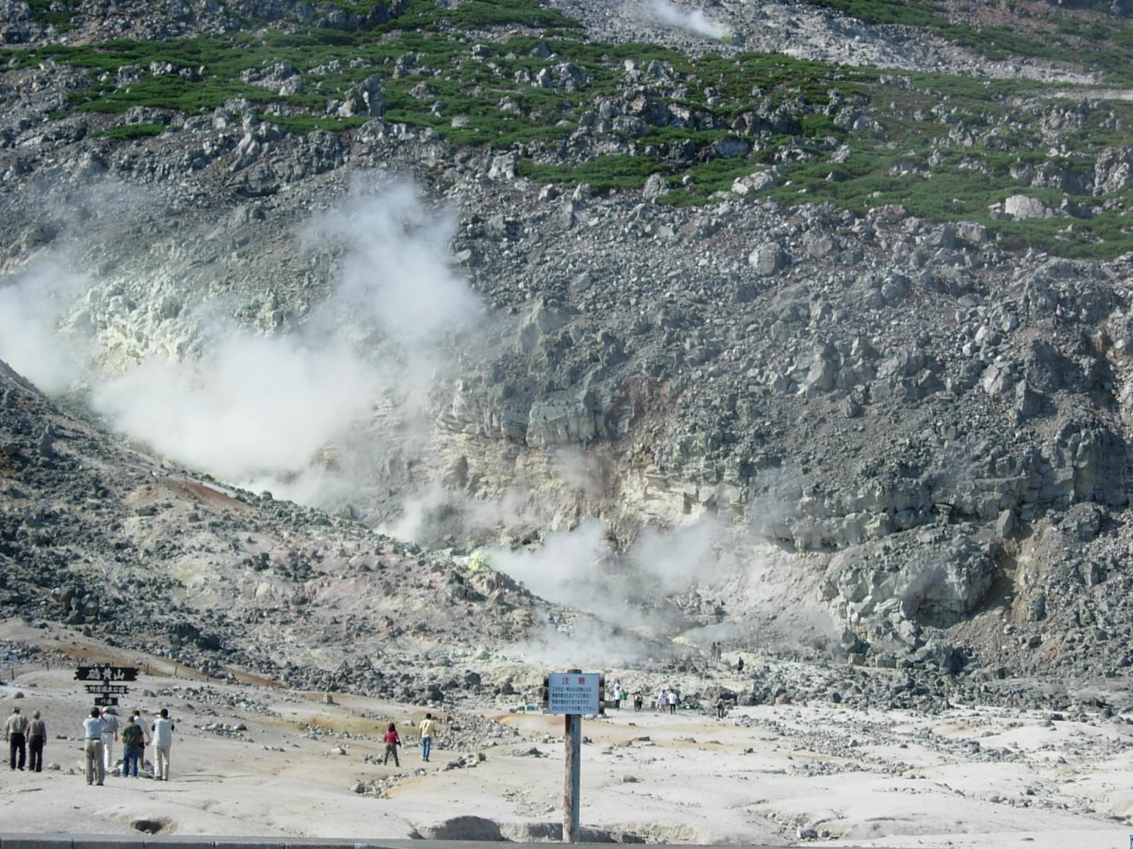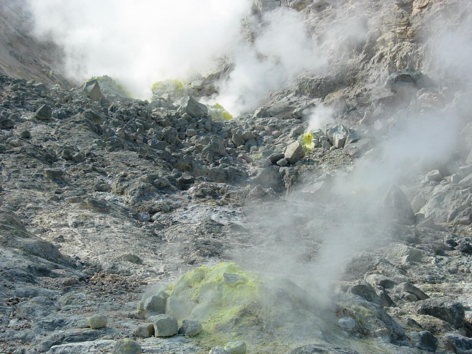 おー、ここまで近づけるのは…安全上大丈夫なのか??まぁ、そんなに火山ガスは強くなさそうなので平気だろうけど。。なかなか興味深い光景です。