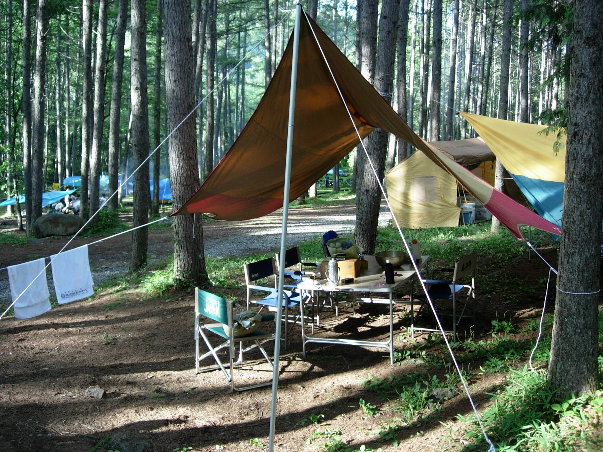数々の準備をしながら、管理人担当の半のテントの様子を見てくると…完璧です!!テントの補助ワイヤーも飛んでなかったし、ブルーシートの屋根も無事。いや、さすが管理人が指導したことだけあると、自慢してみたいところですが、たまたま担当の班にキャンプの経験のある人間が数人いたためかと。。