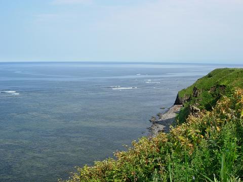 こんどは、オホーツク海まで北上。さすが、厳寒の海です、かなりの透明度。ガケの上から見て、これだけ海底が見えるっていうのは、本州じゃあり得ない風景。