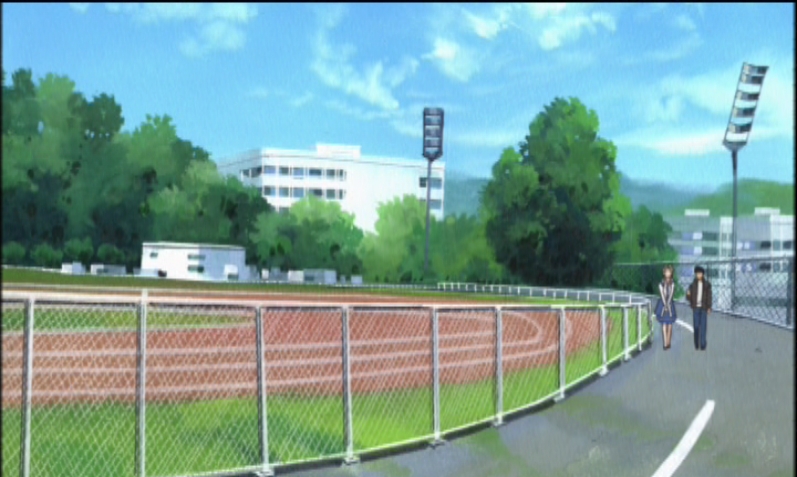 第2体育館手前陸上競技場もリアルに再現。このフェンスとかよく取材してます。